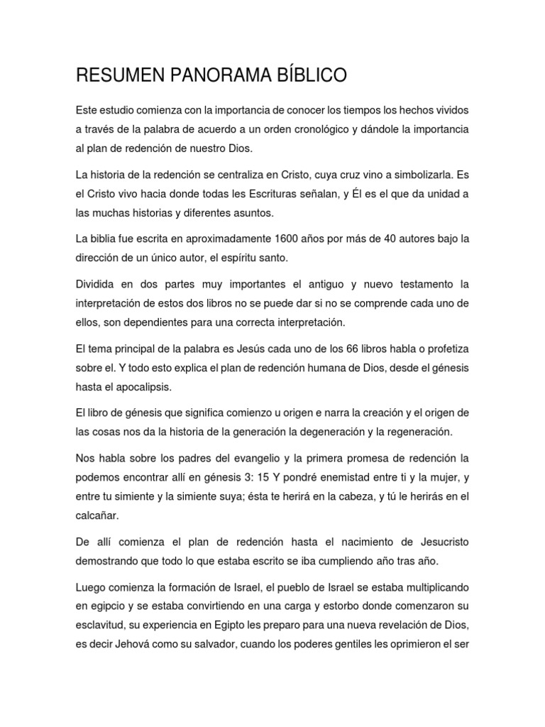 Resumen Panorama Biblico Pdf Viejo Testamento Biblia