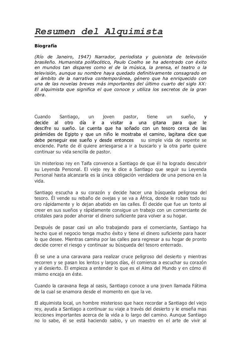 El alquimista paulo coelho resumen corto 12min Team Publicado el 05012019 Micro resumen. El Alquimista en ese lugar le enseo a transformar el metal en oro y le entreg una barra de oro. Resumen del libro el alquimista el mas corto por favor Recibe ahora mismo las respuestas que necesitas.